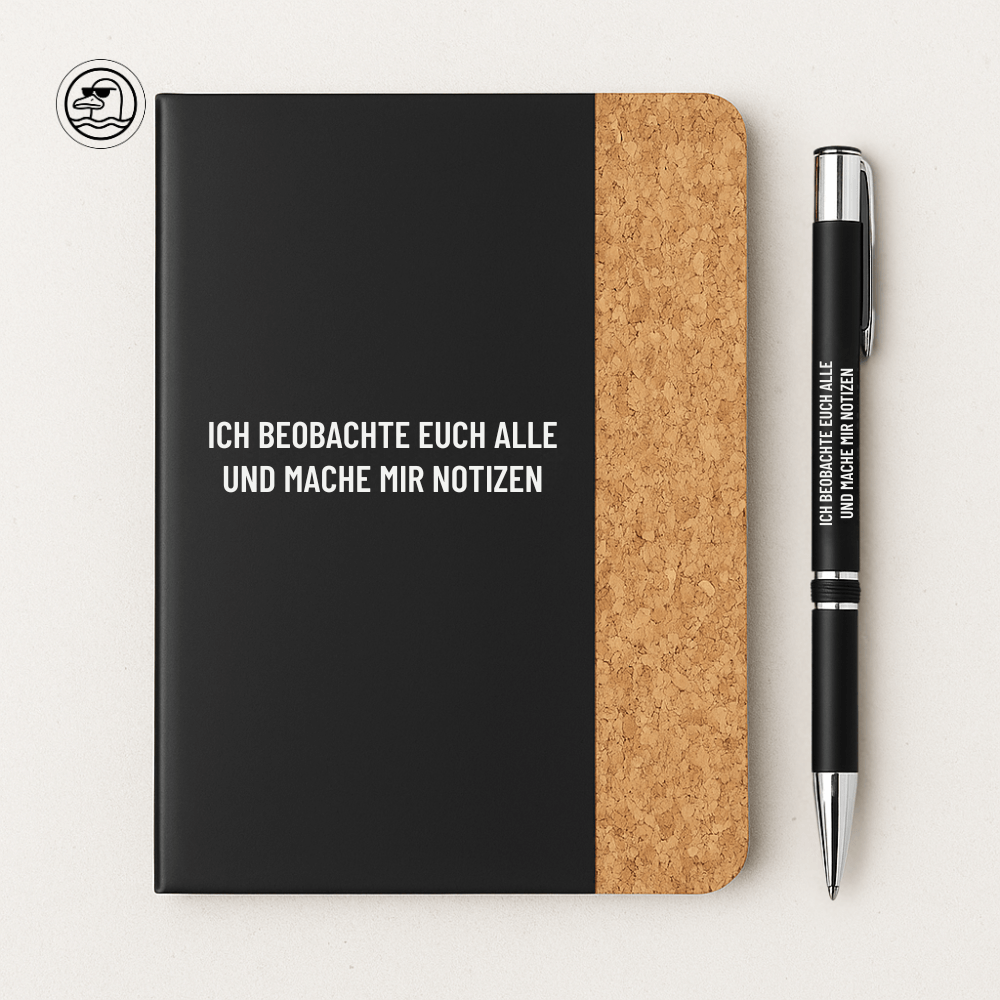 Mit dem Spruch „ICH BEOBACHTE EUCH ALLE UND MACHE MIR NOTIZEN“ sorgt es überall für Gesprächsstoff. Perfekt für Büro, Schule, Alltag – oder wenn du einfach gern mysteriös erscheinst.