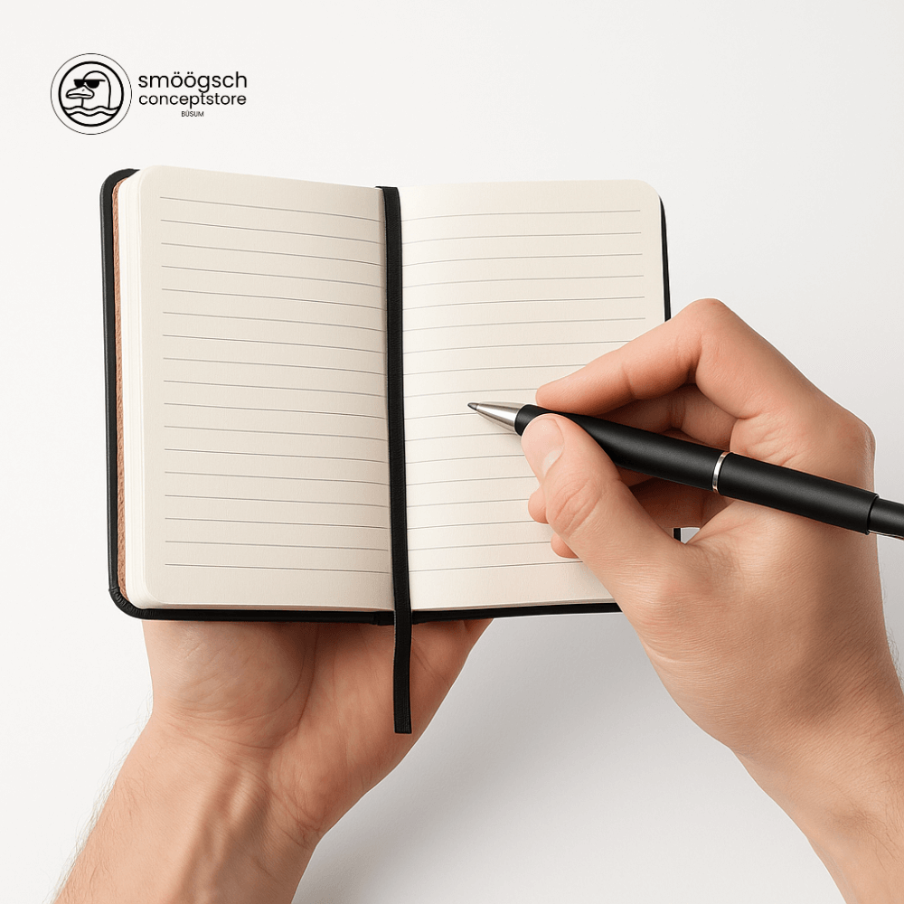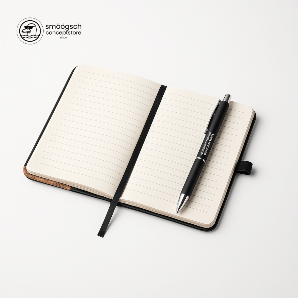 Personalisieren Sie Notizbuch und Kugelschreiber mit Ihrem Logo und machen Sie doppelt auf Ihr Unternehmen aufmerksam.
