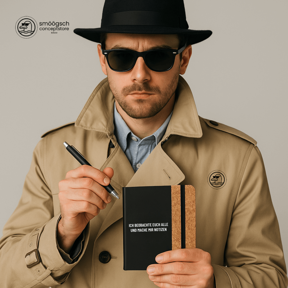 Dieses Notizbuch im Agenten-Look ist dein neues Werkzeug für geheime Beobachtungen, stille Analysen – und natürlich fürs ganz normale Alltag-Chaos.